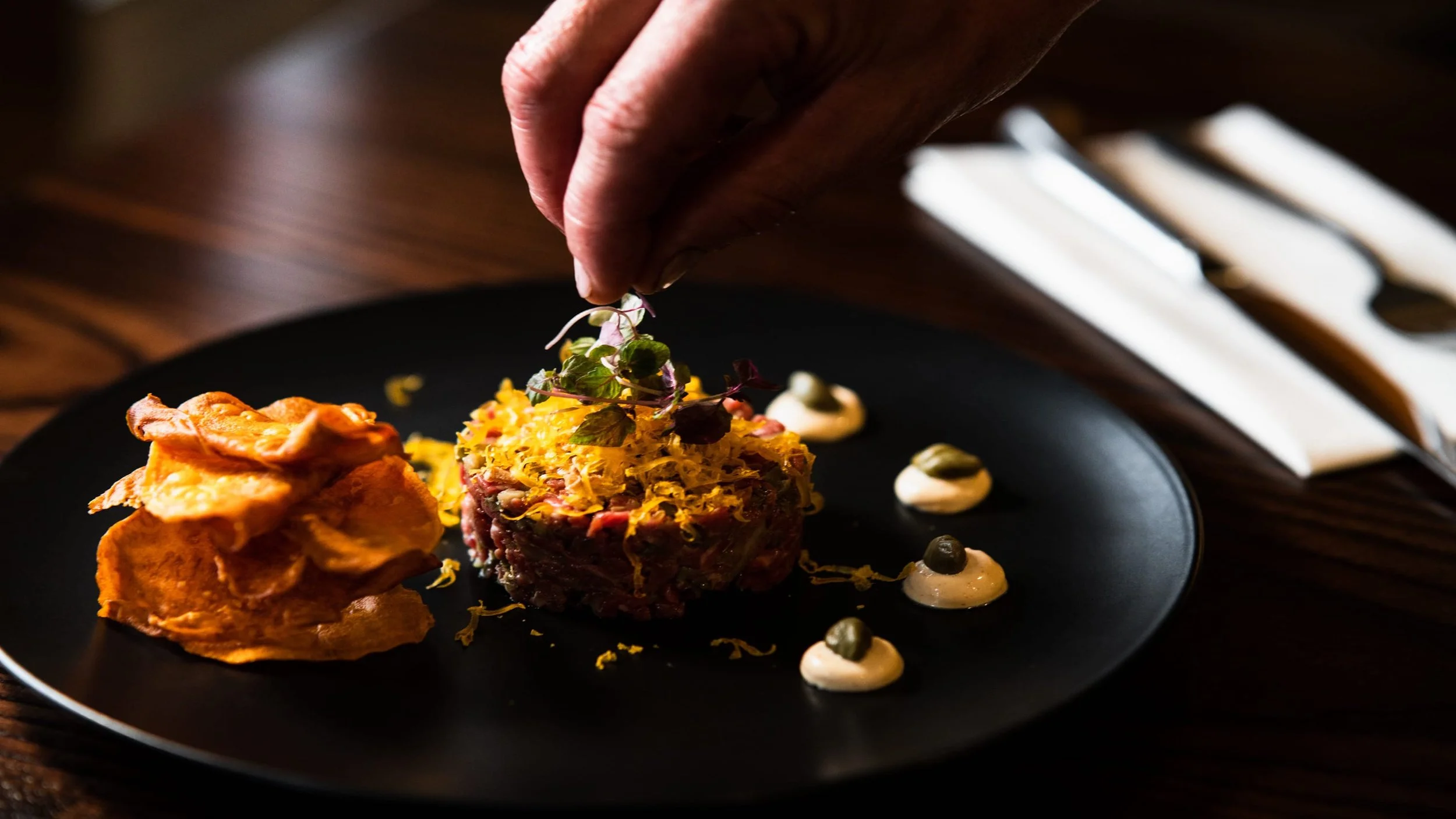 Crispy duck fat potatoes w/ sun-dried tomato pesto